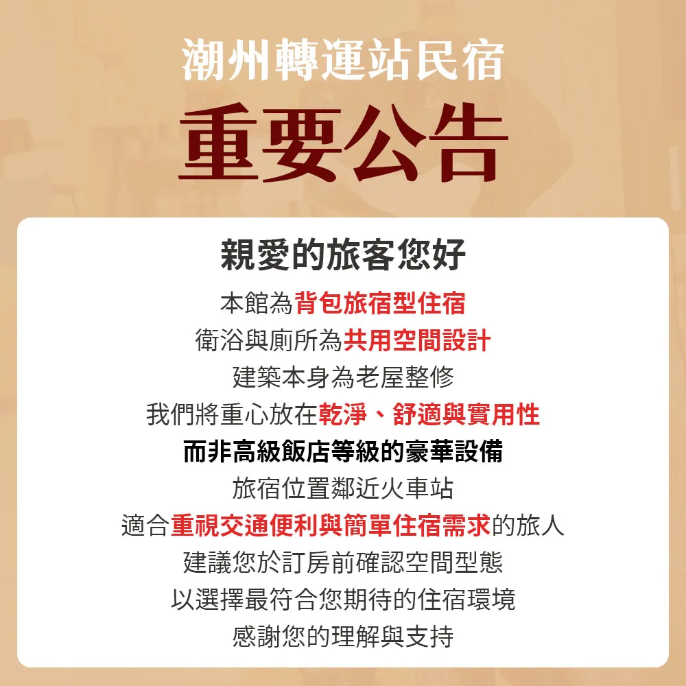 不想拖行李走很遠?我們就在「潮州轉運站正對面」—真的不用導航!乾淨明亮、價格實在,快閃住宿、轉乘過夜超方便。